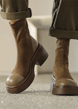 인조소가죽 스웨이드 통굽 앵클부츠