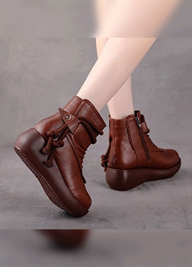 레더 옆지퍼 통굽 앵클부츠[일반/기모 2가지 타입]