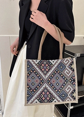 [당일발송]사각 에스닉 패턴 토트백