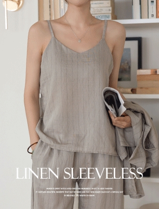 핀스트라이프 레이온+린넨 나시블라우스