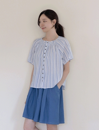 텐셀&레이온 스모크밴딩 스트라이프블라우스