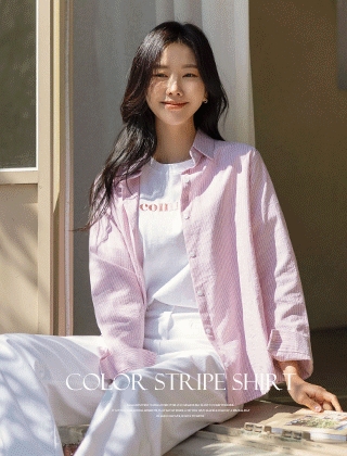 파스텔배색 핀스트라이프 루즈핏셔츠