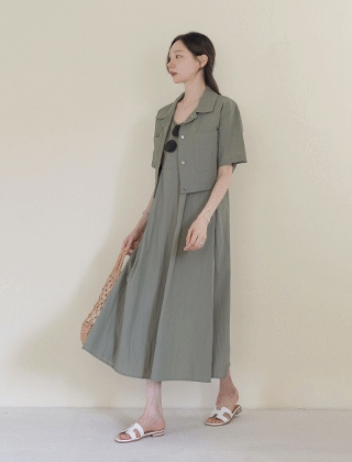 쿨와샤 크롭셔츠&민소매 원피스SET