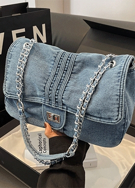 체인 데님 숄더백