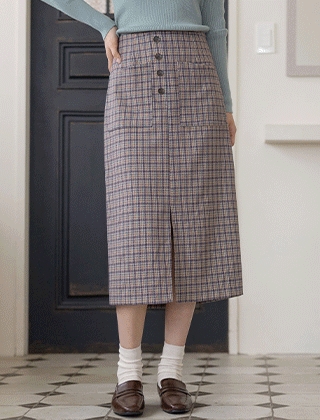 아웃포켓 버튼장식 트위드스커트