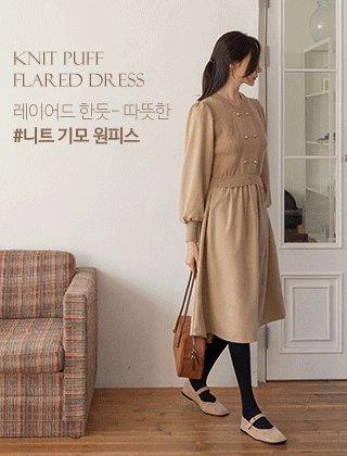 니트배색 골드버튼 롱원피스