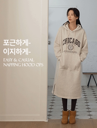 도톰기모 캥거루포켓 후드원피스