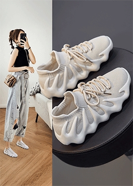 둥근코 스티치 이중끈 스니커즈