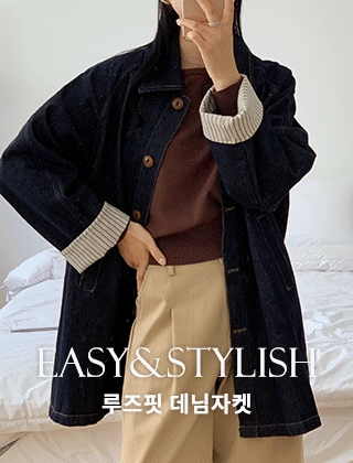 스트라이프배색 인디고데님 루즈핏자켓