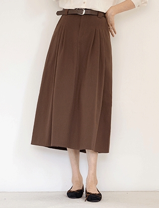 세줄다트&플리츠 코튼스커트+벨트세트