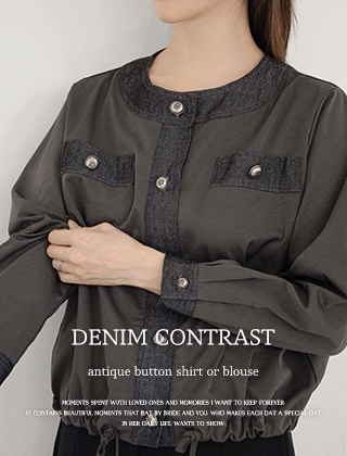 데님배색 엔틱버튼 밑단스트링 블라우스