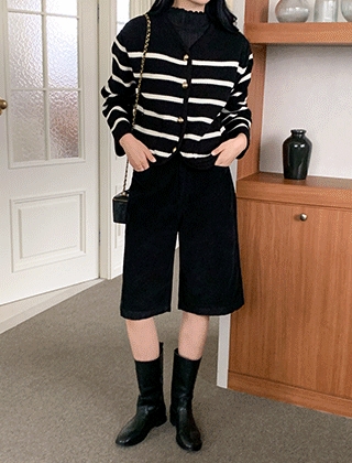 스트라이프 브이넥 니트자켓
