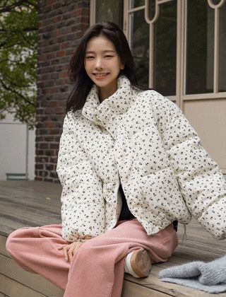 밑단스트링 웰론솜 꽃패딩