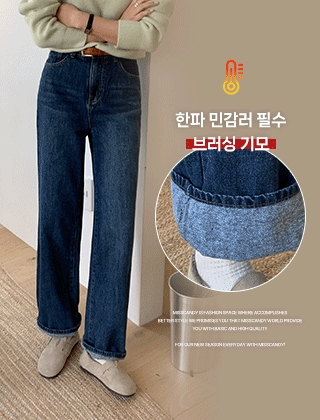 브러싱안감 세미와이드 데님팬츠(숏,베이직,롱)