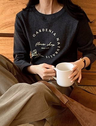 플라워&레터링 기모 롱티셔츠