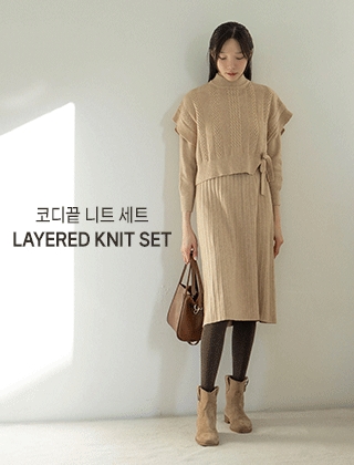 하이넥 리본 베스트+ 브이넥 골지원피스SET