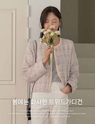 진주버튼 파스텔컬러 트위드가디건