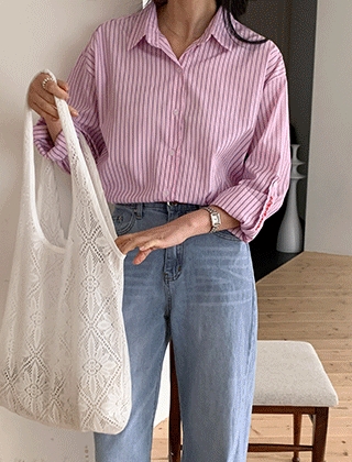 롤업자수 스트라이프 루즈핏 셔츠