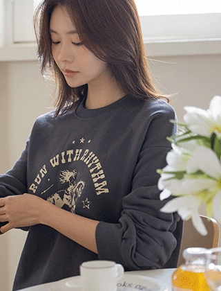 피그먼트 빈티지프린팅 루즈핏맨투맨