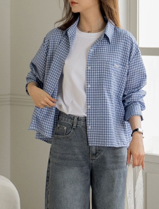 고방체크 레터링 펜던트 루즈핏 셔츠