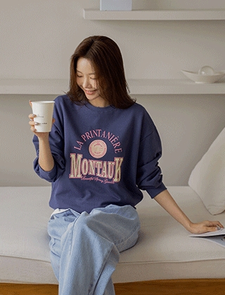 배색레터링 코튼 루즈핏맨투맨