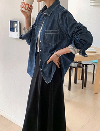 워싱코튼 루즈핏 베이직 데님셔츠