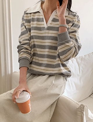 배색카라 트임넥 스트라이프 맨투맨