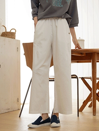 사선다트 와이드 코튼팬츠