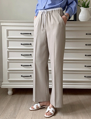 스티치 스트링 배색밴딩 와이드 슬랙스