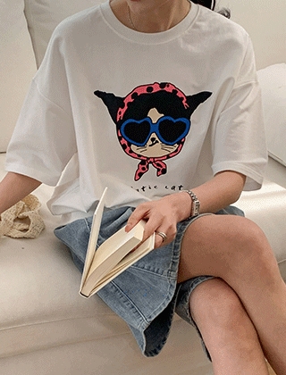 큐티캣 반소매 코튼 맨투맨
