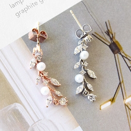 나뭇잎모티브 진주&큐빅 이어링