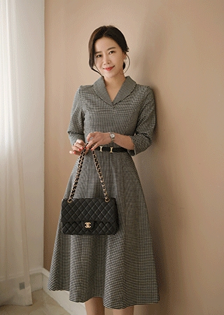 [자체/당일]하운드 체크 원피스(벨트set)(S~L)