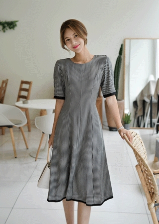 페이지 체크 배색 원피스