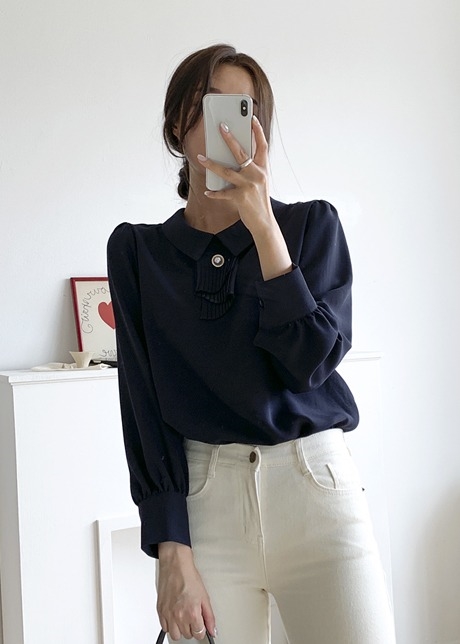 버짓 셔링 진주 블라우스