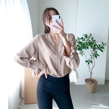 퍼스튼 소매핀턱 블라우스