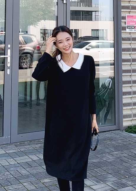쇼룬 물결카라 니트원피스