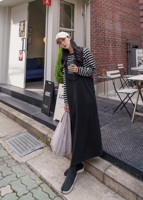 버톤 니트 멜빵원피스