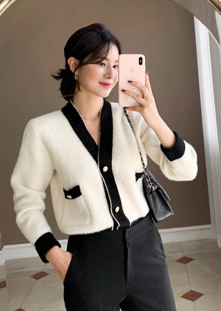 보송 배색 가디건
