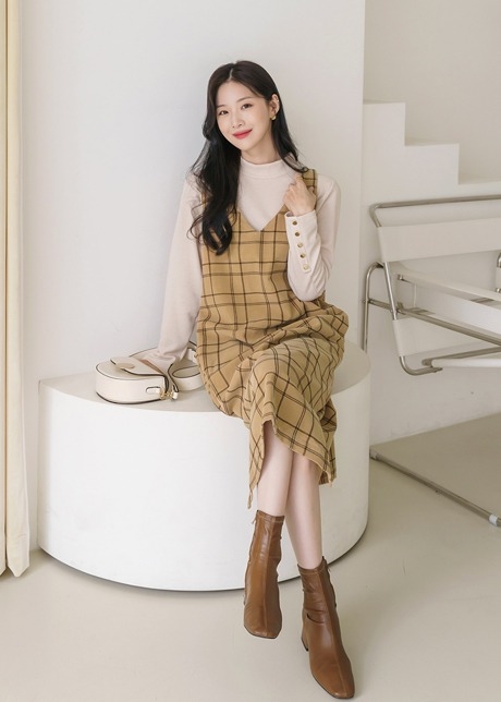 메빈 골덴 체크 뷔스티에원피스