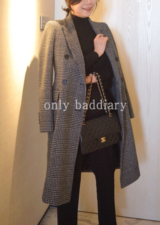 [단독/당일] 울 체크 롱 코트(S~L)