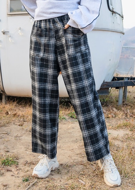 듀니 울 체크 밴딩팬츠