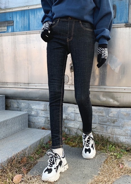 블렛 기모 스키니 데님팬츠