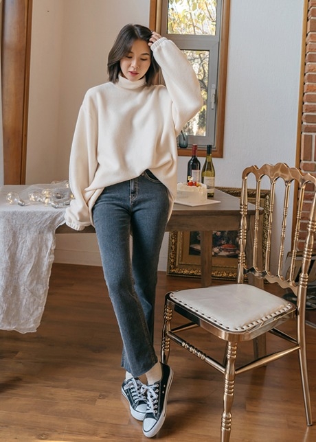 뮤티 기모 뒷절개 데님팬츠