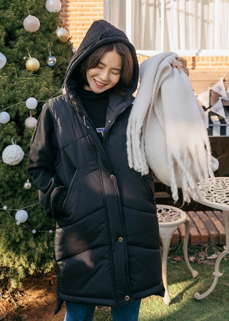 커링 니트 후드 조끼 패딩