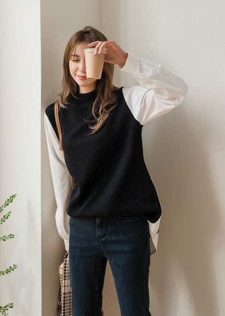 프린골지 배색 니트 티셔츠