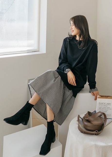 플린 체크 기모 원피스