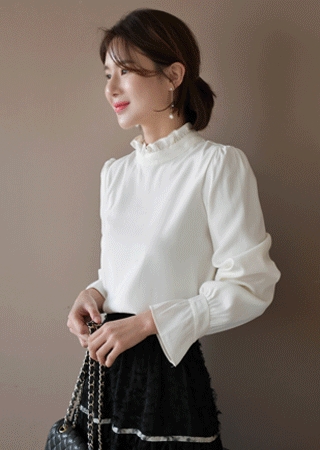 프릴 하프넥 블라우스