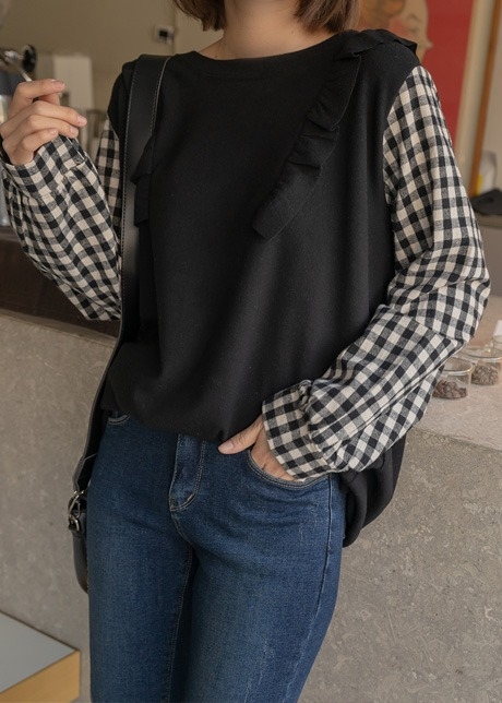 롬스 겉기모 체크소매 티셔츠