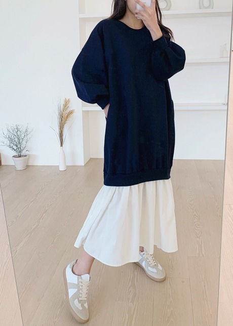 볼륨배색 롱원피스