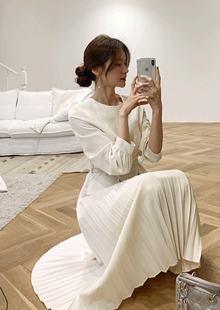 웰리 트위드 플리츠 원피스(벨트set)